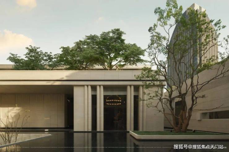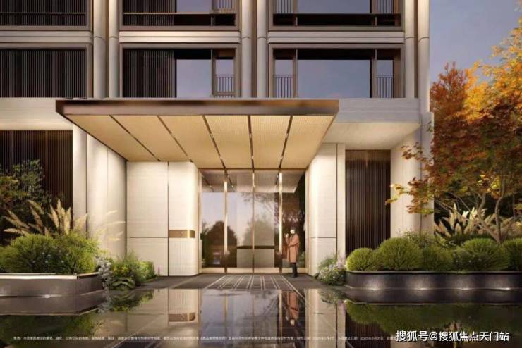 社区入口规划高逾四米的石材景墙,揉石成缎,还原风的褶皱。极致匠心