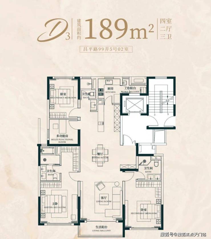 建面约176㎡4房2厅2卫户型: