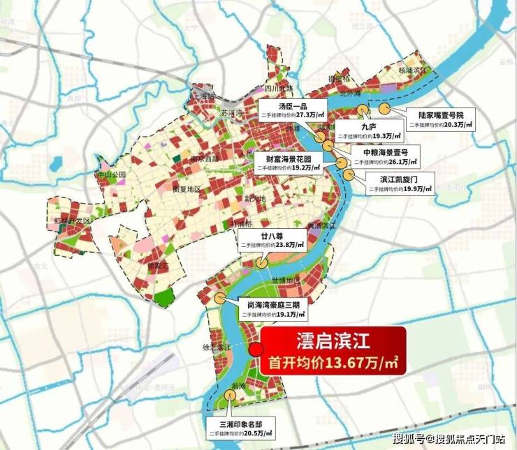 北面的世博在售新房18万/㎡,南面的三湘二手挂牌价20.5万/㎡,对岸的东安项目预估20万/㎡。