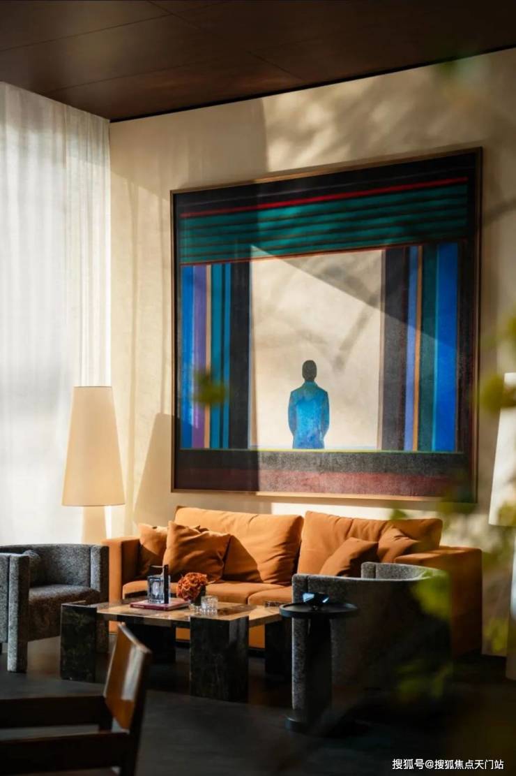 四季隐秀·東玠, 于尺度、比例、材质和光影之间,保持一种内敛而有力的节奏感。白金画框、漂浮飞檐、木石隔栅以及风情序厅等,以现代洗练的设计,打破古典主义的强对称轴线,轻盈而丰富。