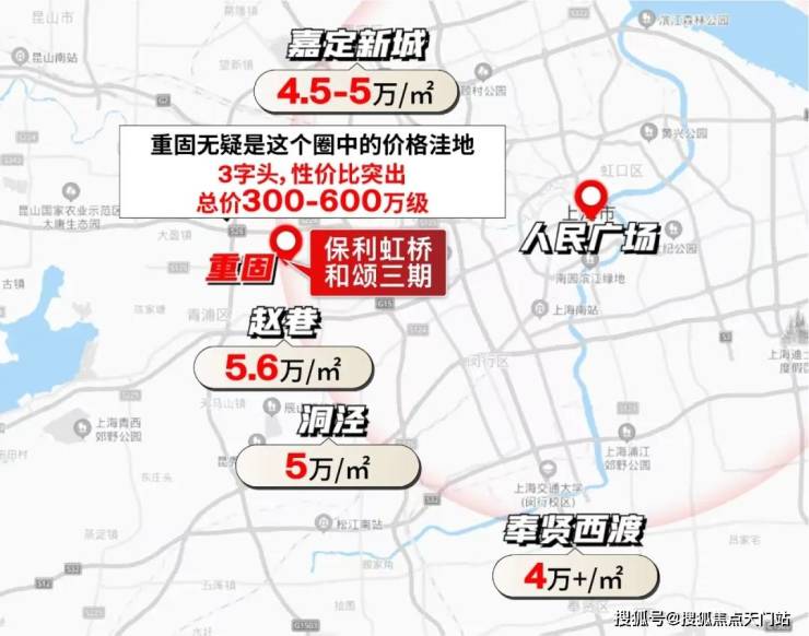 若以市中心为圆心,重固与赵巷、洞泾处于同一半径范围内,但后者房价已达5-5.6万/㎡, 而重固仅3字头。