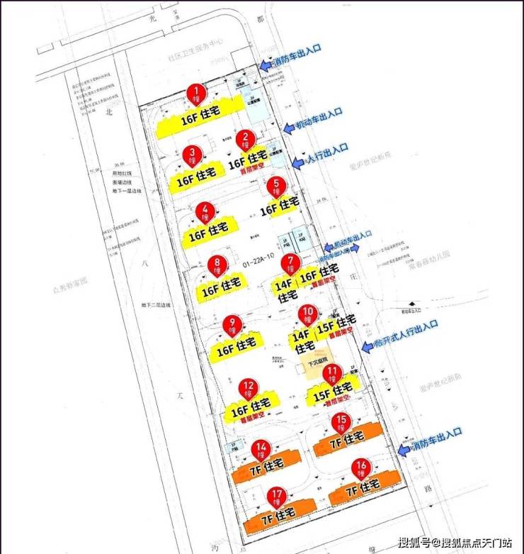 根据项目规划设计方案,项目拟建11幢14-16F高层住宅、4幢7F多层住宅以及若干社区配套用房,共计规划 约752套可售住宅;小区人车分流,规划有下沉式庭院、地下会所,2#、7#、10#、11#、12# 设置有架空层,打造泛会所空间。