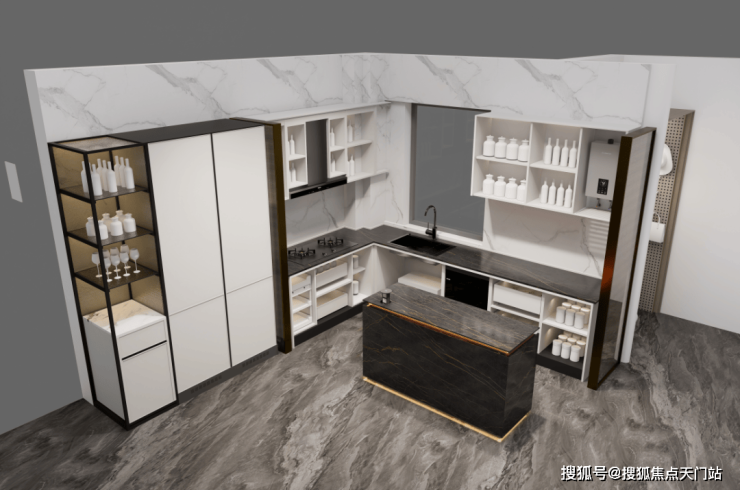 收纳空间全部都是来自博洛尼专属定制(或同等品牌),真正做到拎包入住、省去后期定制比价的烦恼;而在收纳空间之外,外滩源著在用料上同样可以称得上卷王——项目厨房台面是全进口的西班牙DEKTON品牌: