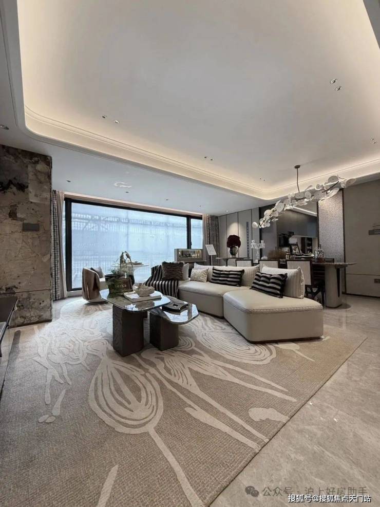 除此之外,最让我惊艳的还是这个能放下6-8人餐桌的宽绰厨房,以及这个尺度感惊人的客厅 。