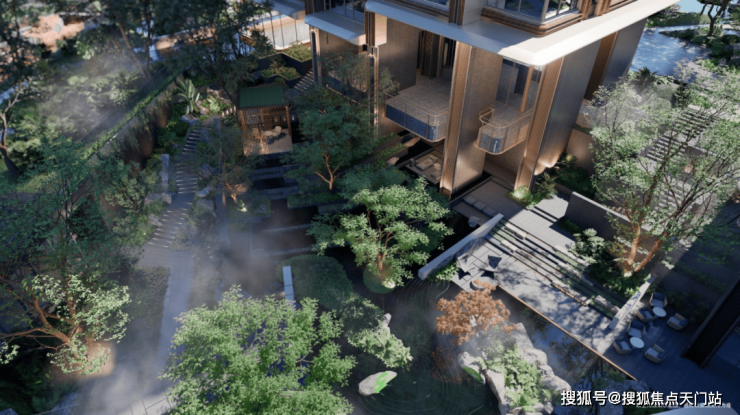 金茂主动放弃了中央位置一套本可以做的大户型,腾出空间,打造了一个架空的悬浮观景平台,每一栋的架空层,都变成了视野通透的“珠光宝盒”