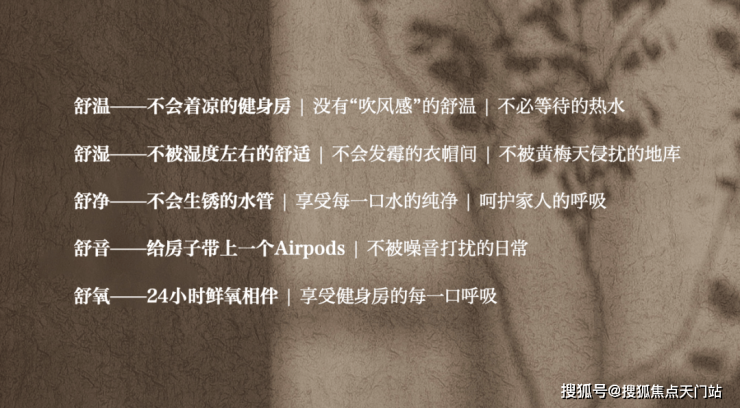 在金茂独有的12大科技住宅系统之上,璞元进行了全面升级优化,集金茂31年科技系统之大成,打造“舒温、舒湿、舒氧、舒音、舒净”全面进化升维的五舒科技系统,堪称金茂顶峯科技力作