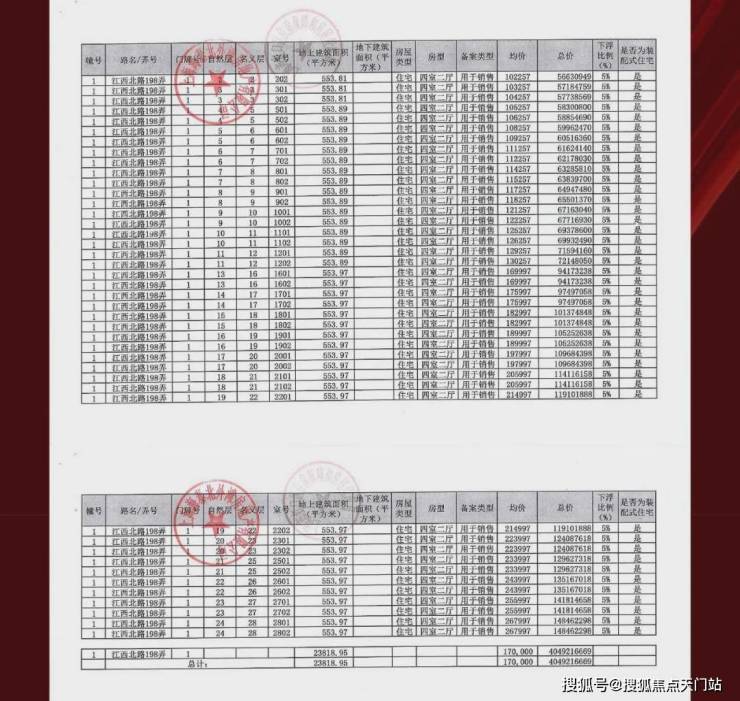 一房一价表如下: