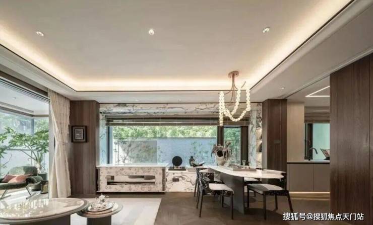 同时也得益于两个地块融合在一起形成了完整地块,项目打造了约160米超长中轴,约4000㎡中轴景观,约700㎡落玉水院、下沉庭院以及私属入户花园。
