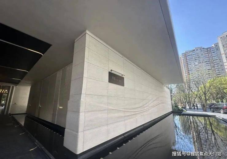 稍微走近一点就能看到采用了大量的 弧形元素和石材材料 。石材的质感本身就厚重,在上面叠加类似海浪的线条弱化了厚重感,反而显得轻盈。
