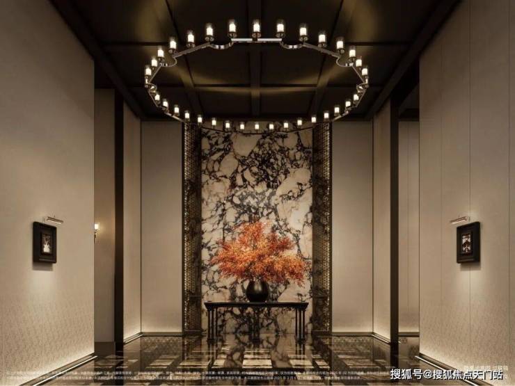 材料 选用 意大利石材, BVLGARI HOTEL 大理石,铝型材塑型红, 四层金属网格 墙面以及 梧桐叶金属屏风 等, 打造独属老静安的记忆符号,高奢定制,市区豪宅调性拿捏!