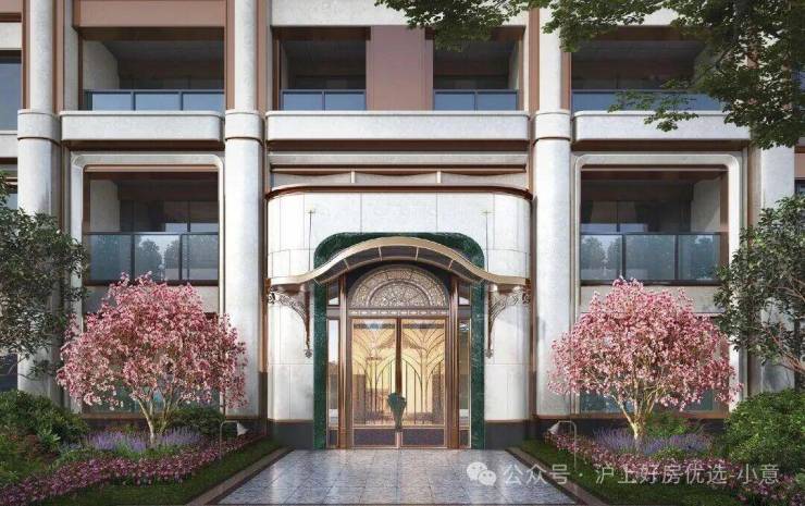 项目大门口标配的铜狮庄严中透出几分摩登腔调。主入口的铜艺精雕大门上,建发特别邀请了百年品牌“老凤祥”掐丝珐琅非遗大师陈徐奇,以掐丝珐琅工艺打造门钹,精致典雅。门厅以上海的标志白玉兰为造型,勾勒出摩登与飘逸并存的气质。