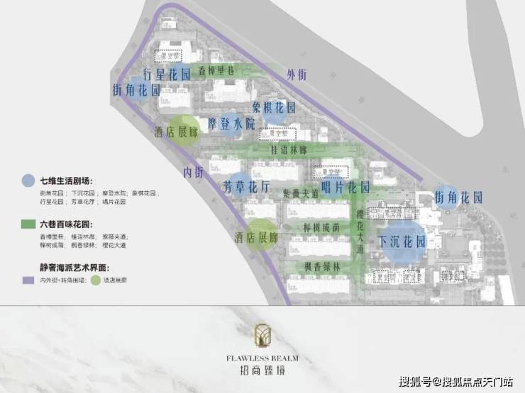 【招商臻境】精心规划了七维生活剧场,包括: 街角花园、摩登水院、下沉花园等七重生活场景,营造四季分明、美景如画的精致水岸归家之路。