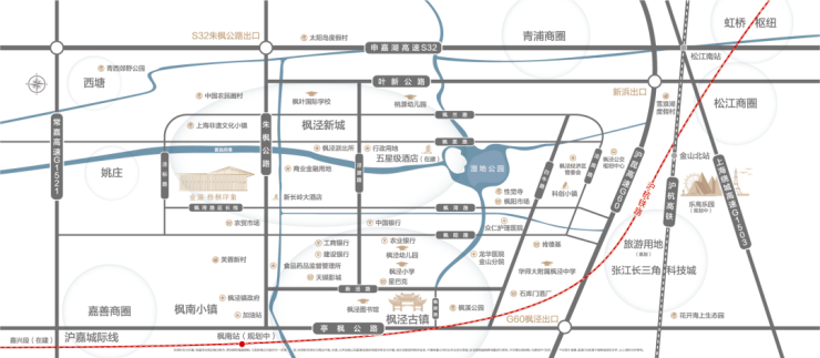 其他配套:(阿里巴巴数据飞天园区园、乐高乐园、华平科技产业园、枫泾张江长三角科技城、临港金山枫泾园区)规划中