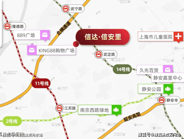 交通方面,项目500米内双轨交汇,坐拥13/14号线武宁路站和14号线武定路站,1千米范围有江苏路、静安寺、昌平路、隆德路等市中心地铁站,周边还有23路、45路、94路、136路、321路等十余条公交路线。多条地铁线路与公交路线交织成网,轻松连接城市的各个角落。