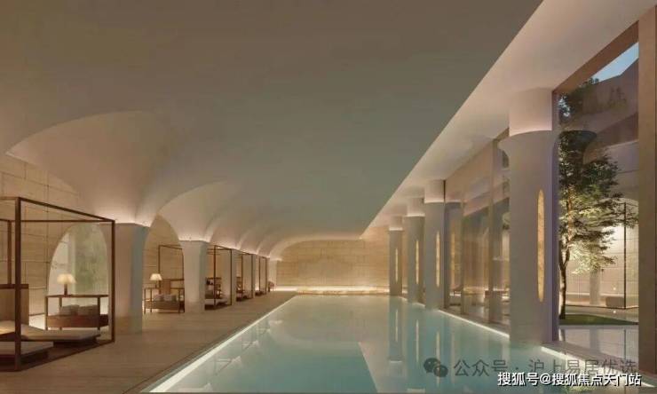 项目整体建筑非简单复古以“风貌底盘一立面建筑一顶部塔冠”的三重结构向上生长,呼应“过去一现在一未来”的时代叙事,外滩瑞府一举将尺度宏大的中央花园置于社区核心,围绕它,楼栋与边界自然形成“园中有园”的小场域,包括沙龙社交空间、会客厅、运动休闲空间、童玩空间,以及大堂区域和一个位于地下的泳池会所。