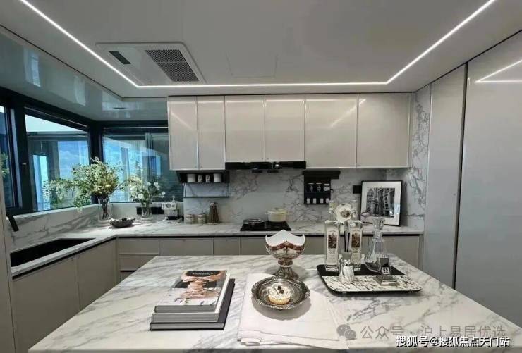 整体动静分区格局。在U型厨房基础上融入 “社交属性”,让烹饪时亦可与客厅家人互动。