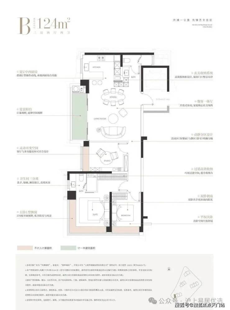 建面约124㎡三房
