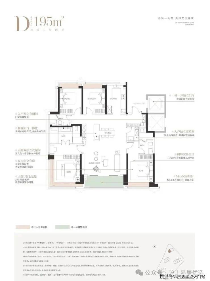 建面约195㎡四房: