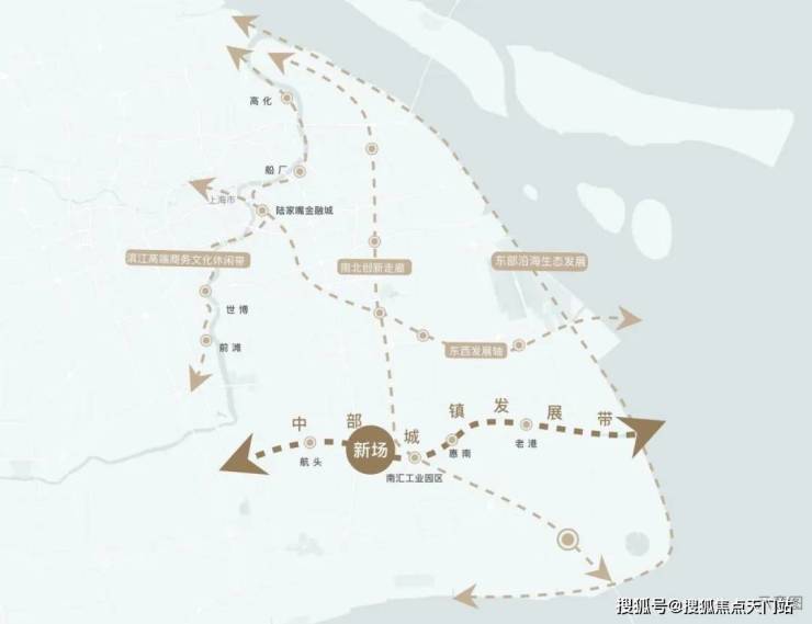 当我们开始瞩目新场的位置,不难发现浦东的发展,必然少不了新场的鼎力支持。它不仅处于贯穿南北的产业密集带,吸附张江南拓带来的产业&人口密集效应,同时还位于浦东着力打造的东西向中城发展带上,可以预见新场板块早已在浦东城市界面迭新的时代格局之内。