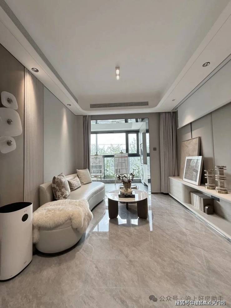 入户门厅以弧形悬浮顶棚为特色,为业主带来柔和温润的归家关怀,让归家的每一步都充满舒适与惬意。