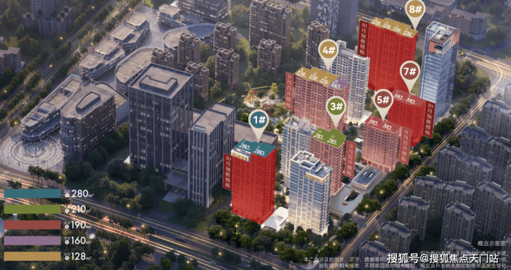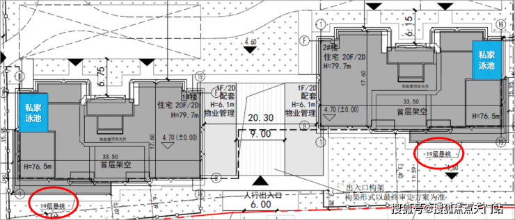 蕞南端的1#和2#楼均配套有私家泳池,还在19F采用了住宅楼当中较为少见的 悬挑工艺 ,延伸出了一定的使用空间,预计就是做类似于“悬挑泳池”的。这里应该就是传说中的“超级大平层”所在位置。