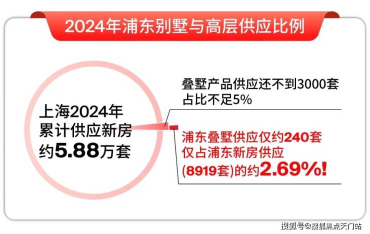 据统计,上海2024年累计供应新房约5.88万套, 其中叠墅产品供应还不到3000套,占比不足5%;聚焦浦东,叠墅供应仅约240套,仅占浦东新房供应的约2.69%! 百中不足三!