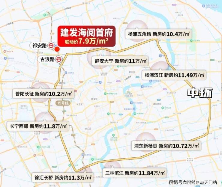 相比之下,联动价仅约7.9万/㎡的桃浦15号线地铁房—— 建发海阅首府,俨然是整个中环肉眼可见的价格洼地!