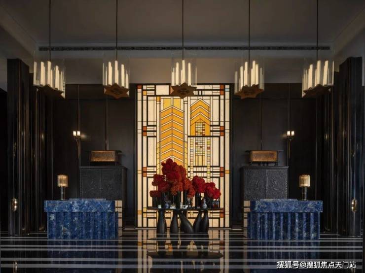 其次,项目的很多细节都融入了海派经典元素,比如落客区美轮美奂的 约300㎡彩色玻璃穹顶,艺术连廊拱形廊道灵感都来自和平饭店。彩绘花窗的拱门造型则取自武康大楼。
