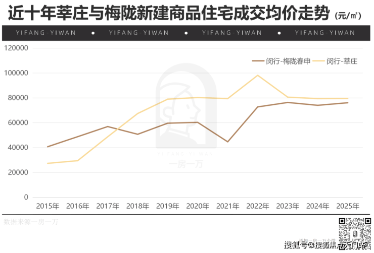 梅陇与莘庄肩并肩,近几年的供应非常强势,仅去年成交就接近两千套,且近几年的新房均价也比较平稳。