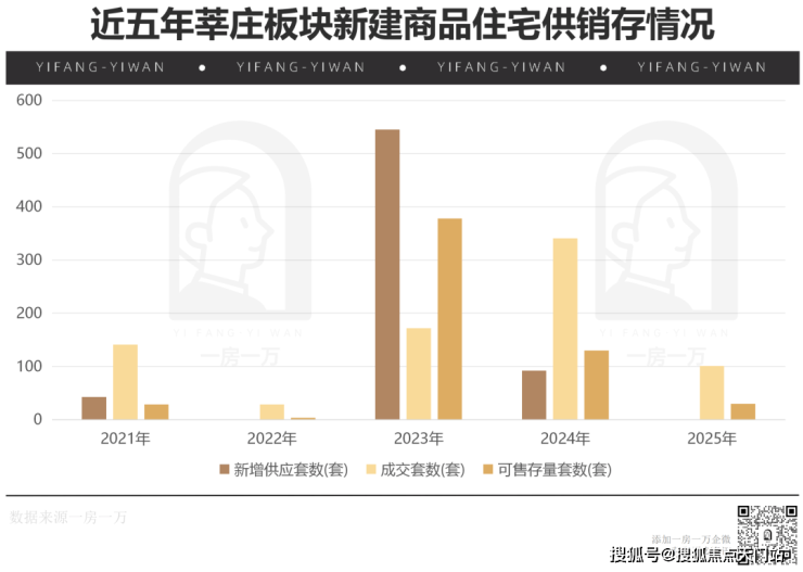 近五年最大的供应高峰出现在2023年,也仅有保利建工海玥锦上和中企云启春申两盘入市,随后就进入了沉寂,直到今年的6批次土拍,莘庄才重新回到新房的视野。
