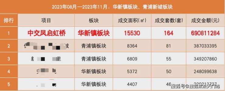 作为热销10亿+的项目,继首开之后,中交凤启虹桥再次荣登8-11月华新、青浦镇板块在售新盘中,成交套数、成交面积、成交金额三大榜首!且远超第二名成交2倍之多!名副其实的实力选手!