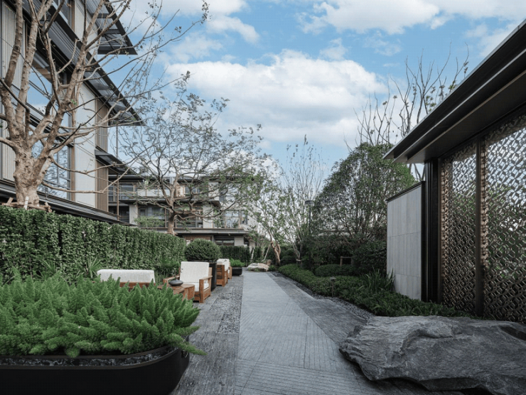 2025年9月,上海市《关于进一步促进本市住宅品质提升的规划资源若干意见》明确指出,新建住宅要鼓励设计创新、建筑功能创新、生活环境创新,打造全龄友好的宜居美好社区。象屿・天宸雅颂|颂墅积极响应政策导向,在产品营造上深度融合宋式美学与现代功能,以“三归七制十二境”的规划格局重现当代门第仪制。项目精心打造的“归心森径”现已开放,穿过宋式瓶门,沿途遍植百年罗汉松、珍品羽毛枫、乌桕、紫薇及造型黑松等名贵树种,以树石为笔,勾勒出四季流转的宋韵画境,让每一次归家皆成为一场穿越风景的身心洗礼。