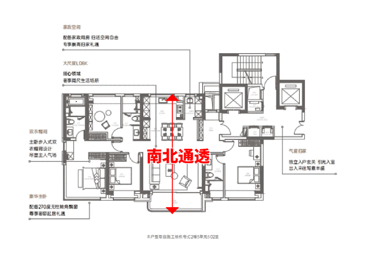 建面约103㎡中间套房源性价比极高,同样是室内无走道、S墙、动静分离、干湿分离的设计。