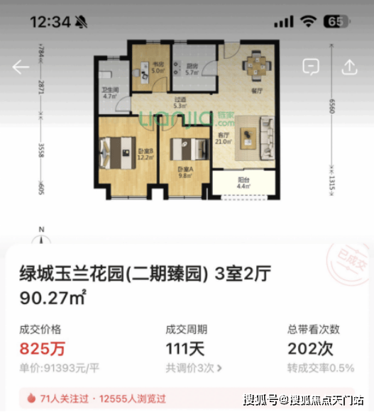 6.二手市场价格可期,旁边绿城二期今年成交一套90m²小户型,单价9.1万,比保利天奕前期小户型最贵单价还贵出近1万/m²!