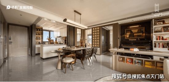 2.social厨房设计,开放式厨房水槽区转向餐厅一侧,杜绝消极空间让室内轻松连贯,也让情感交流、家庭互动在无界限。