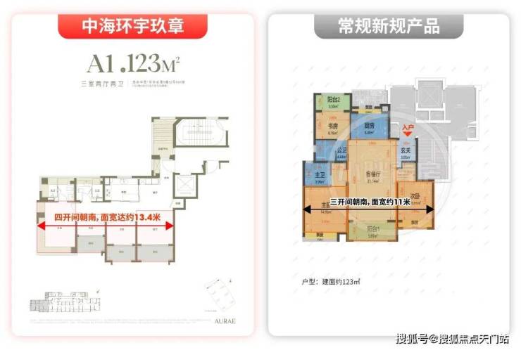 简单换算:同样建面约123㎡