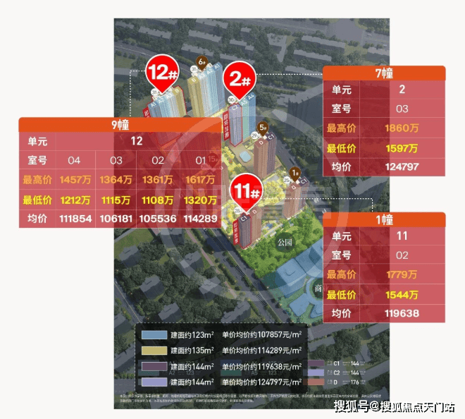 附上楼栋均价和房源总价段: