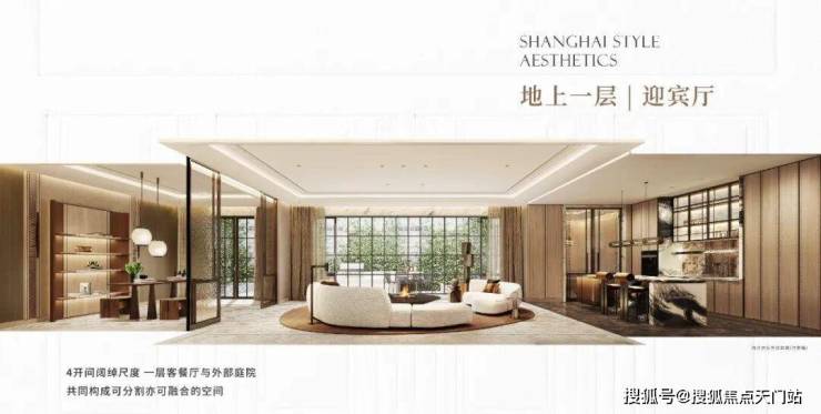 地下1F志趣空间, 约7.2m层高 ,私人菁英社交圈层。首层花园入户, 大横厅会晤场域 ,与时代精神际会。二三层静谧于心, 起居室多套房设计 ,梧桐下的栖心之所。 屋顶露台、花园庭院,超大附赠面积 ,藏身心于天地恢弘。
