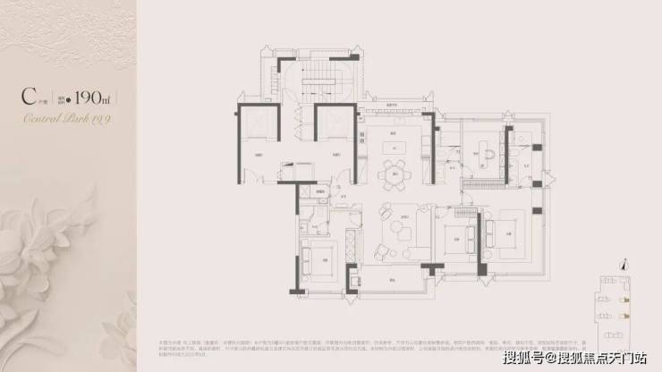 同面积还有一款四房边套户型,灵感源于被称为“远东第一豪宅”的吴同文住宅。