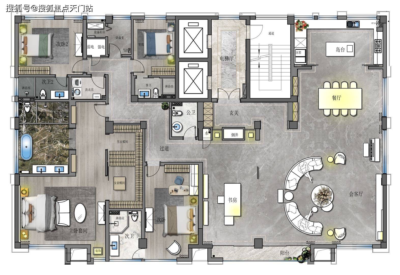 7、120平超大客厅,尽享奢华的尺度空间。