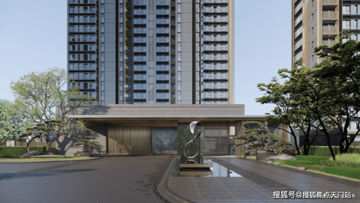 缦云上海一切美好由园区入户门头开始,延续缦系独有的美学艺术,缦云一期入户门头约32米宽、6.5米高,采用蓝翡翠奢石、百年黑松、古桩和丛生朴树,阔绰典雅。用艺术装点生活,甄选中国现代雕塑艺术家朱峰作品《无尽之环》,以简练的无限循环形态象征无尽与永恒,让人从外部嘈杂中的兴奋过渡到宁静状态,进入一种新的心境。