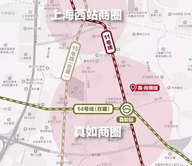 高尚领域地理位置非常优越,位于真如板块曹杨路铜川路交界,是11号线及在建中14号线双线地铁上盖项目。