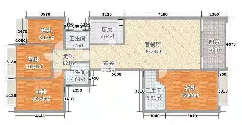 建面约162㎡ 50年产权精装4+1房户型 层高3.5米