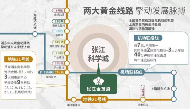 地铁21号线(在建中),进一步打通项目与张江的价值链条。 4站到达张江科学之门所在的学林路站,还可换乘康桥东站与机场联络线(已开通运营),可以覆盖张江各个重要产业园。 预计2026年年底实现通车运营,项目交房后就可以直接享受地铁通勤的便利!