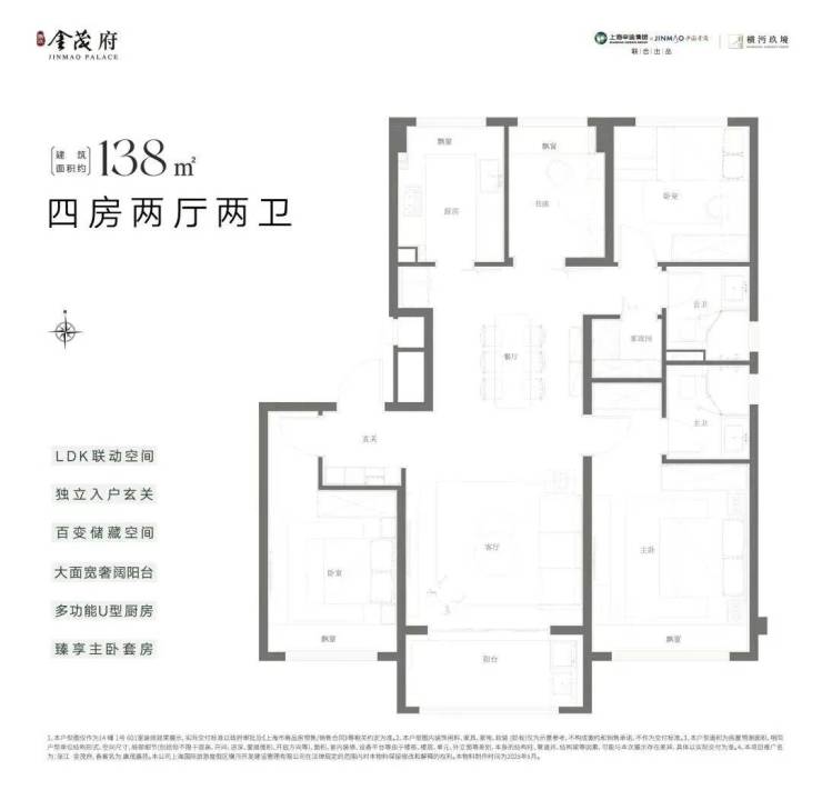 项目洋房全系 无连廊设计,得房率高。如 建面约138㎡户型,四叶草布局,南北通透, 实得面积相当于一般高层住宅145㎡户型。除此之外,这个户型还有“真改善”不可或缺的三重优势: