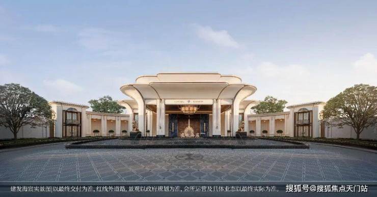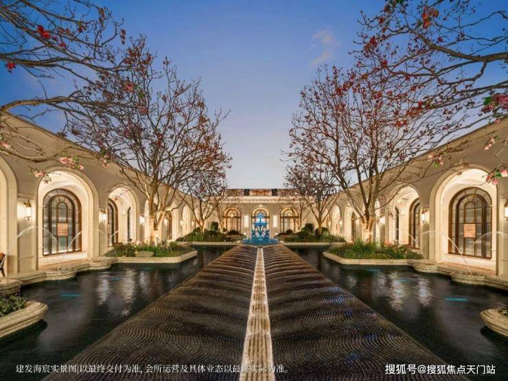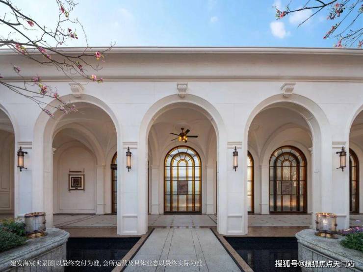 恢弘门头,豪气满满,宽约65米,14米挑高白玉兰造型穹顶,搭配水景喷泉营造归家仪式感。