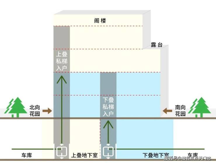 第三、上叠北向花园入户,下叠南向花园入户,这种错开让上下叠都具备了有天有地独门独院的私享体验,这也是其他叠墅很难享有的。