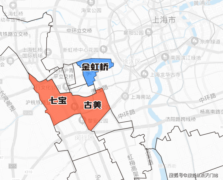 闵行第一贵金虹桥和第二贵古美,分列漕河泾的一南一北。