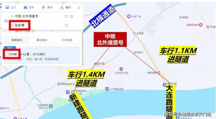 自驾上,项目往北约300米就是北横通道,往南车行约1公里,就是新建路隧道和大连路隧道直达浦东。从项目到陆家嘴、北外滩和外滩都在10分钟左右。