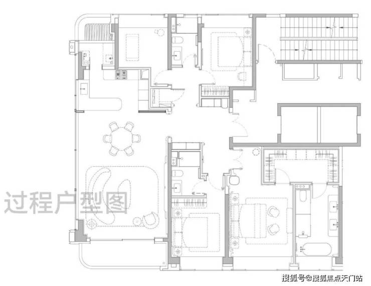 主卧大套房设计带超大主卫和衣帽间,面积约50㎡,尺度感与市面上近300㎡的顶豪拉平。